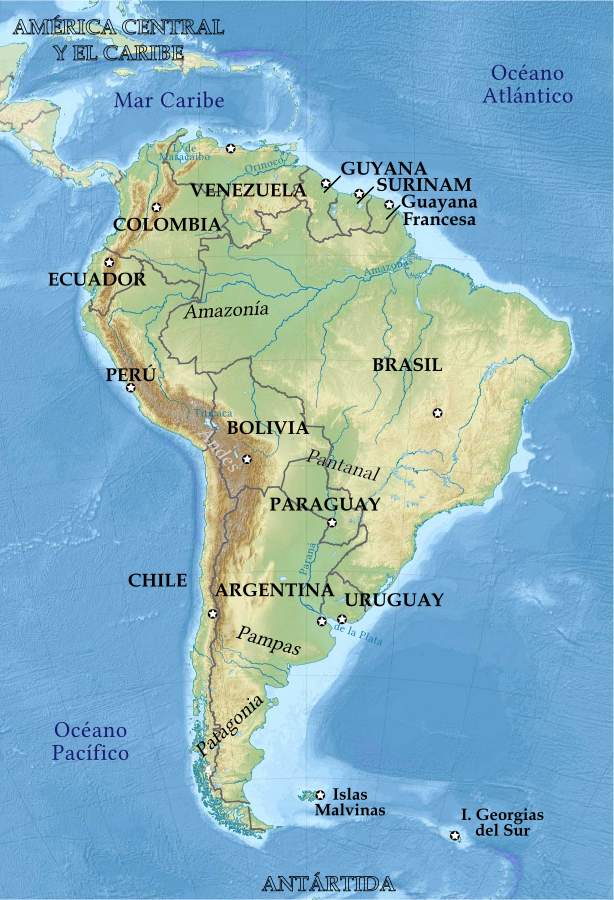 Pasa por Argentina, Chile, Bolivia, Perú, Ecuador, Colombia y Venezuela.